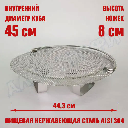Купить перфорированное фальш-дно для куба с внутренним диаметром 45 см можно через сайт с доставкой в Москве или в оффлайн-магазине АлкоПрофи. Всегда в продаже недорогие самогонные аппараты и ингредиенты для приготовления домашнего алкоголя.
