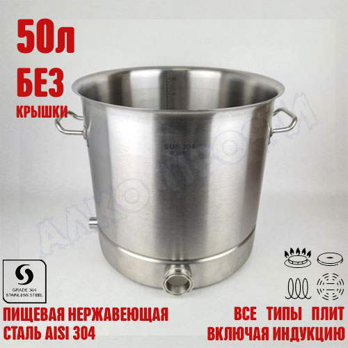 Перегонный куб из пищевой нержавеющей стали AISI 304 кастрюльного типа. Используется с дистилляторами (самогонными аппаратами) в качестве емкости нагрева спиртосодержащих жидкостей.