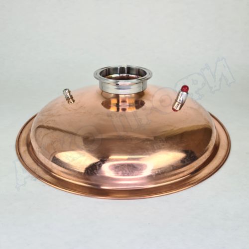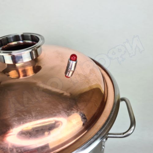 Перегонный куб из пищевой нержавеющей стали AISI 304 кастрюльного типа с крышкой из меди отечественного производства. Используется с дистилляторами (самогонными аппаратами) в качестве емкости нагрева спиртосодержащих жидкостей.