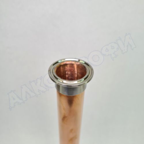 Царга медная - это труба из меди с кламповыми соединениями. Медь отлично абсорбирует сернистые соединения и придаёт мягкость напитку. Позволяет избежать брызгоуноса на первом перегоне и обеспечивает разделяющую функцию на втором.
