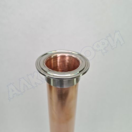 Царга медная - это труба из меди с кламповыми соединениями. Медь отлично абсорбирует сернистые соединения и придаёт мягкость напитку. Позволяет избежать брызгоуноса на первом перегоне и обеспечивает разделяющую функцию на втором.