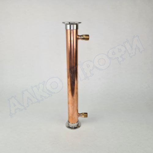 Холодильник медный 2" 400мм Д42 НР1/2 - Кожухотрубный проточный холодильник служит для охлаждения больших объёмов пара и флегмы. Способен утилизировать большие подаваемые мощности, благодаря чему может быть использован как холодильник и как дефлегматор. В режиме работы как холодильник охлаждает продукт самогоноварения. В режиме дефлегматора охлаждает флегму для её последующего отбора, дистилляции и ректификации. Медь отлично абсорбирует сернистые соединения и придаёт мягкость напитку.