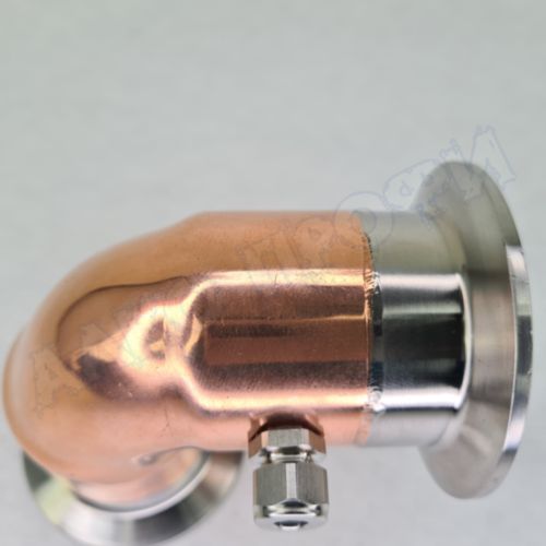 Купить медный угол (отвод) 90° с фланцами 2" и ниппелем под термометр для куба самогонного аппарата можно через сайт с доставкой в Москве или в оффлайн-магазине AlkoProfi. Всегда в продаже различные ингредиенты и аксессуары для приготовления домашнего алкоголя.