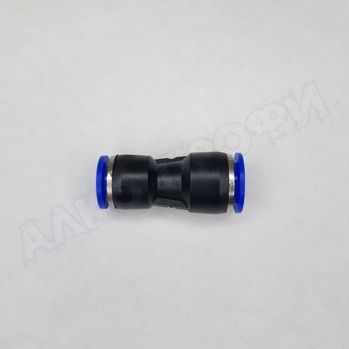 Соединитель для соединения двух полиуретановых трубок соответствующего наружного диаметра. Имеет цанговые быстросъёмные соединения.